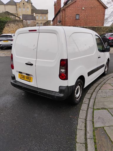 2018 Peugeot Partner SE L1 van with the reliable 1.6 HDi engine and 5-speed manual gearbox. This is a 1 owner van from new and was previously used for car parts delivery, so it has been regularly maintained to keep it on the road. It has covered 175,000 miles but drives very well and appears to have been looked after mechanically. There are a few service stamps present and a sticker under the bonnet showing the cambelt was replaced at 100,000 miles. The van comes with electric windows, electric mirrors, cruise control, rear parking sensors, CD player, a 3-seat cab, bulkhead and a ply-lined rear. MOT until June 2026, HPI clear and supplied with 1 key. Priced at £2,500 with delivery available and viewing by appointment.